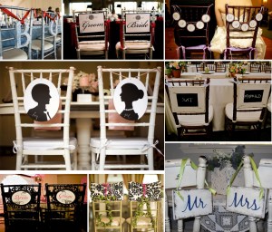 In the meantime, here are some fabulous bride and groom chair decorations: