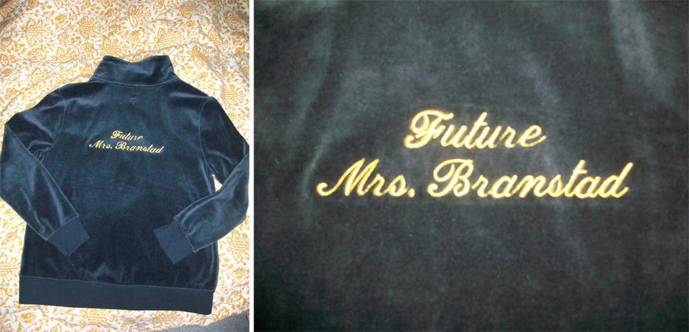 Tomorrow I am picking up part of my hostess gifts for my sisters who are hosting my bachelorette party this weekend. I can’t give away what it is here, but I will say that they were being monogrammed. My go-to local place for all of my embroidering needs is Engler Embroidery. They do a great job and are inexpensive. One of my favorite things they’ve done are the “Future Mrs.” jackets.