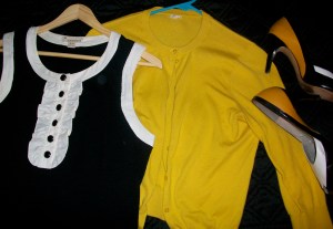 Black and Yellow Update: After spending about an hour in my closet and rummaging through my drawers, I have picked out a winning ensemble. Bachelorette party here I come!