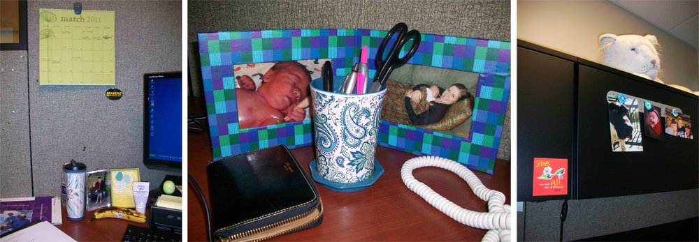 Accessorize Your Cube Update: Well, it wouldn’t quite make the Paper-Source Office catalog, but it’s a work in progress. I love having pictures up of the Bean at work. Looking at her cute little face never gets old.