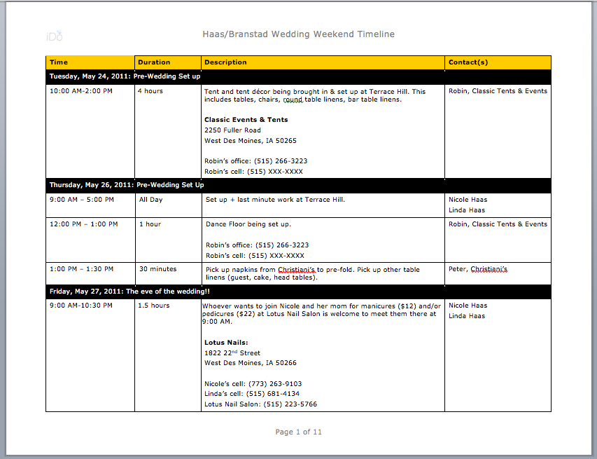 Wedded Bliss? Being Organized Update: The wedding week timeline is coming along nicely. Here is how our week is shaping up – The Week of I DO