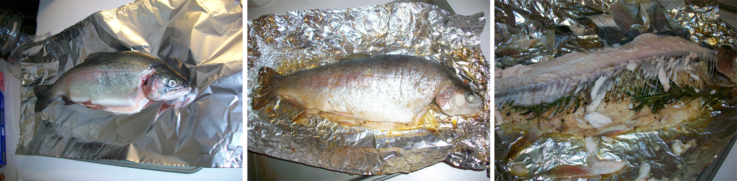 Monday, Monday Update: I got home tonight from work and the gym and I walk in on Marcus preparing our dinner – freshly caught from his recent trip to the Rainbow Trout Ranch in Rockbridge, MO.