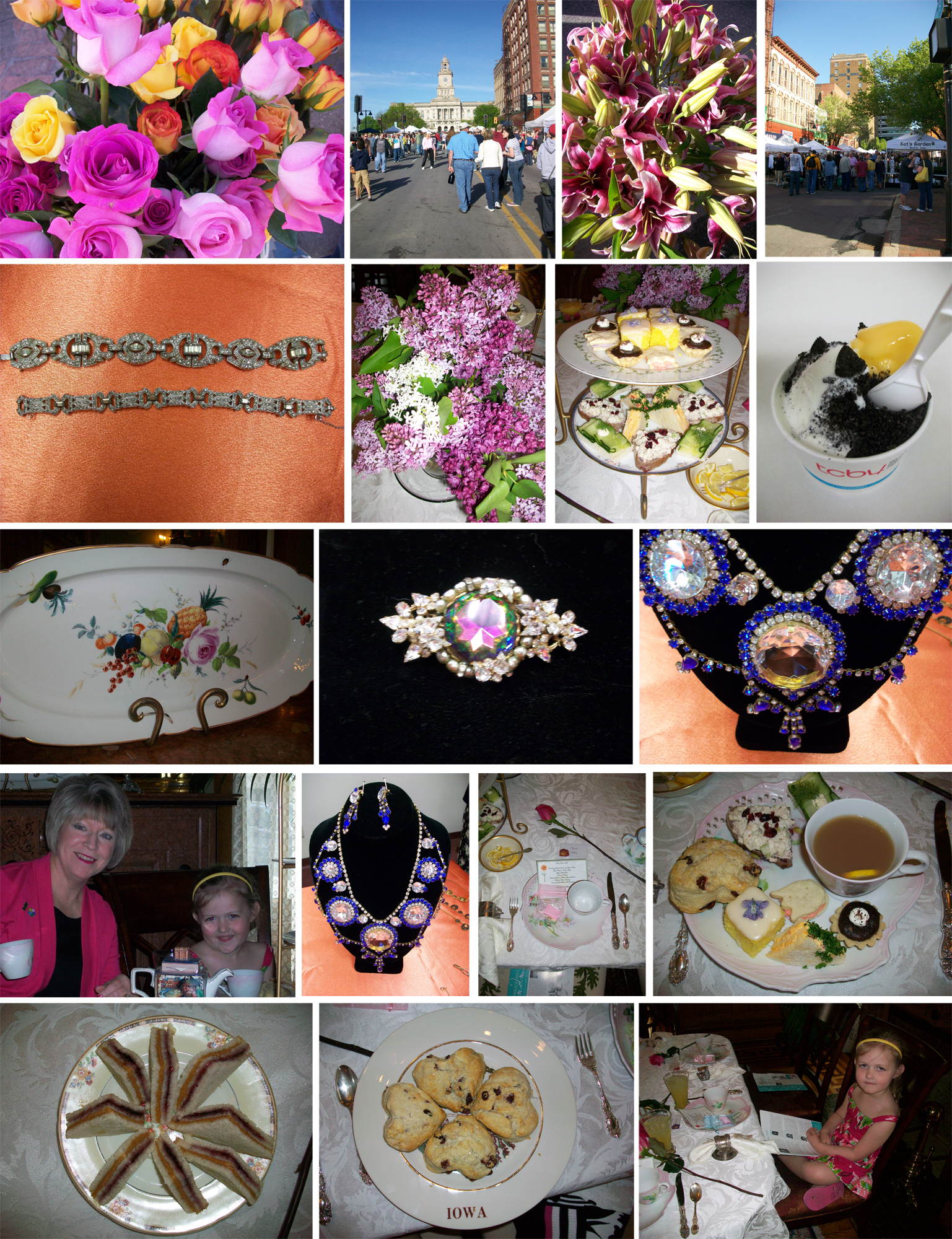 Well, let’s chat about the weekend a little bit. I started off my weekend at the downtown farmer’s market. I highly suggest you check it out at some point this summer. It is one of my favorite things to do in Des Moines. Later on in the afternoon we had tea at Terrace Hill for Mother’s Day and it was very special for me. I got to sit down with both my mom and my future mother-in-law at the same time to celebrate both of them. The theme of the tea was antique jewelery. Check out some of the gems – talk about jaw droppers!