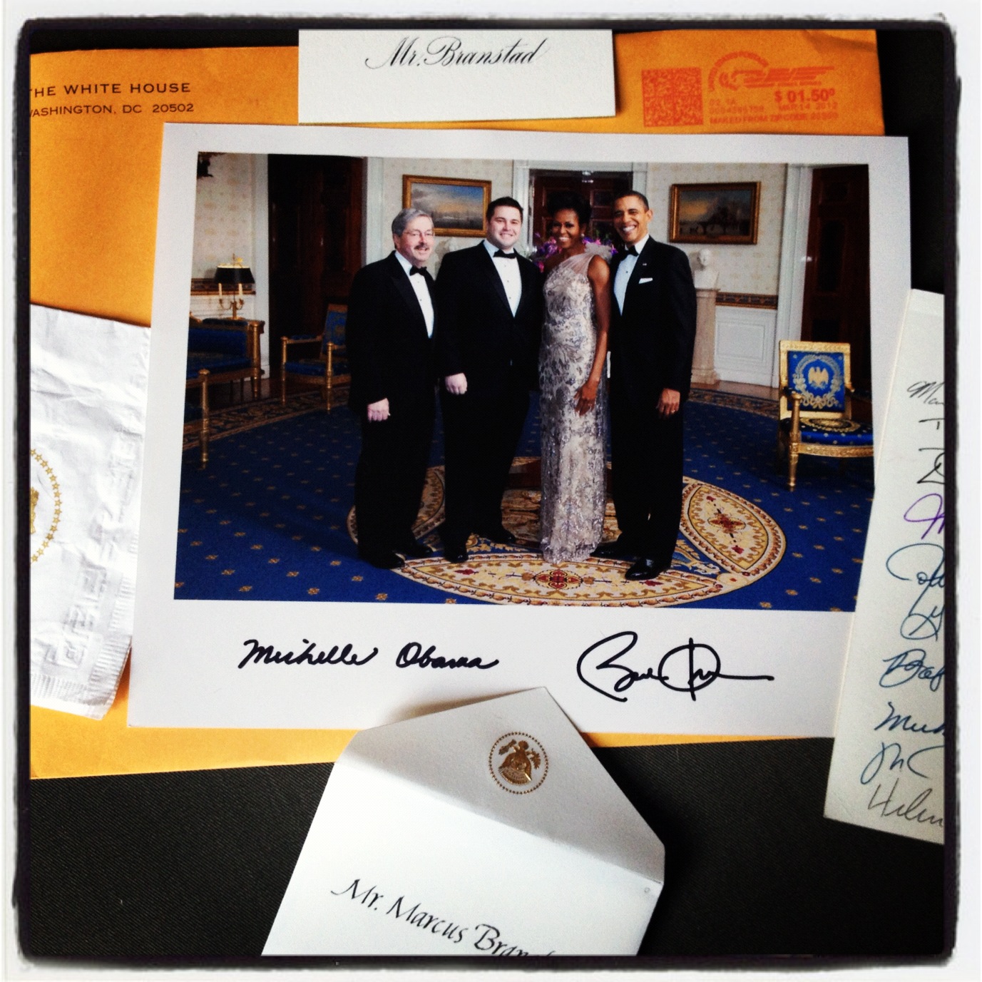 After waiting for about a month, Marcus finally received his official photo with the President and First Lady from his trip to D.C. (mentioned here). Such a great memento from a very memorable evening for him.