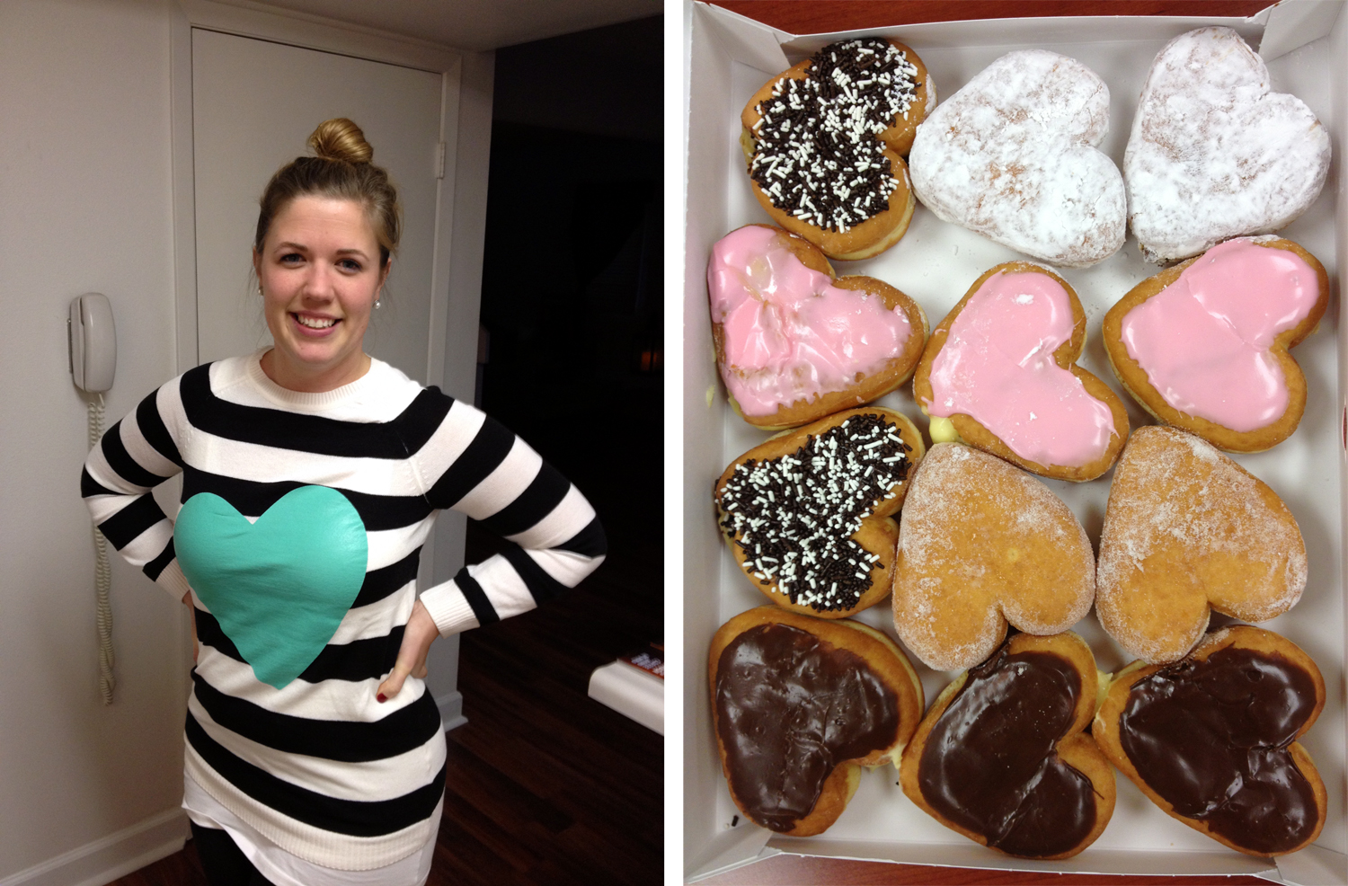 [Valentine sweater from H&M + Dunkin Donuts for my co-workers]