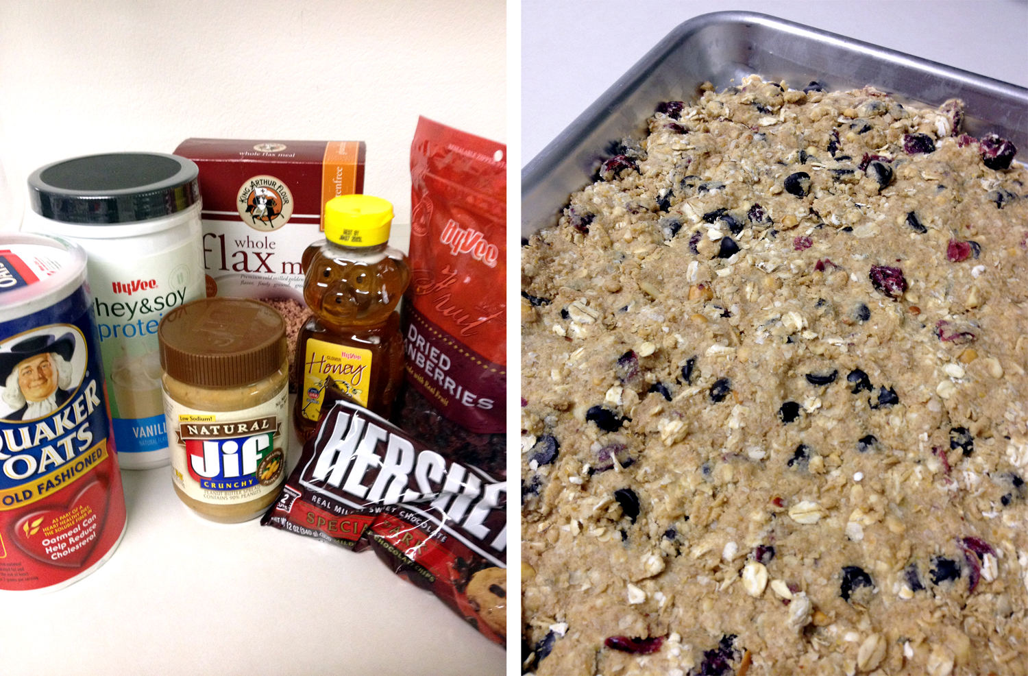 After the 5K on Tuesday, all of the participants were welcomed back with a few healthy treats. One of them being some pretty delicious power bars. They were so good that I decided to make them at home tonight so that I could have them on hand at all times.