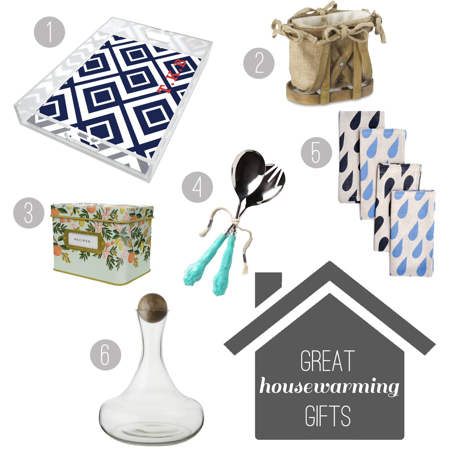 We are invited to our friends’ housewarming party tomorrow night and I think it’s necessary to have a little something special for them. While I put the final touches on their gift, here are perfect examples of what to take to new home owners in the future: