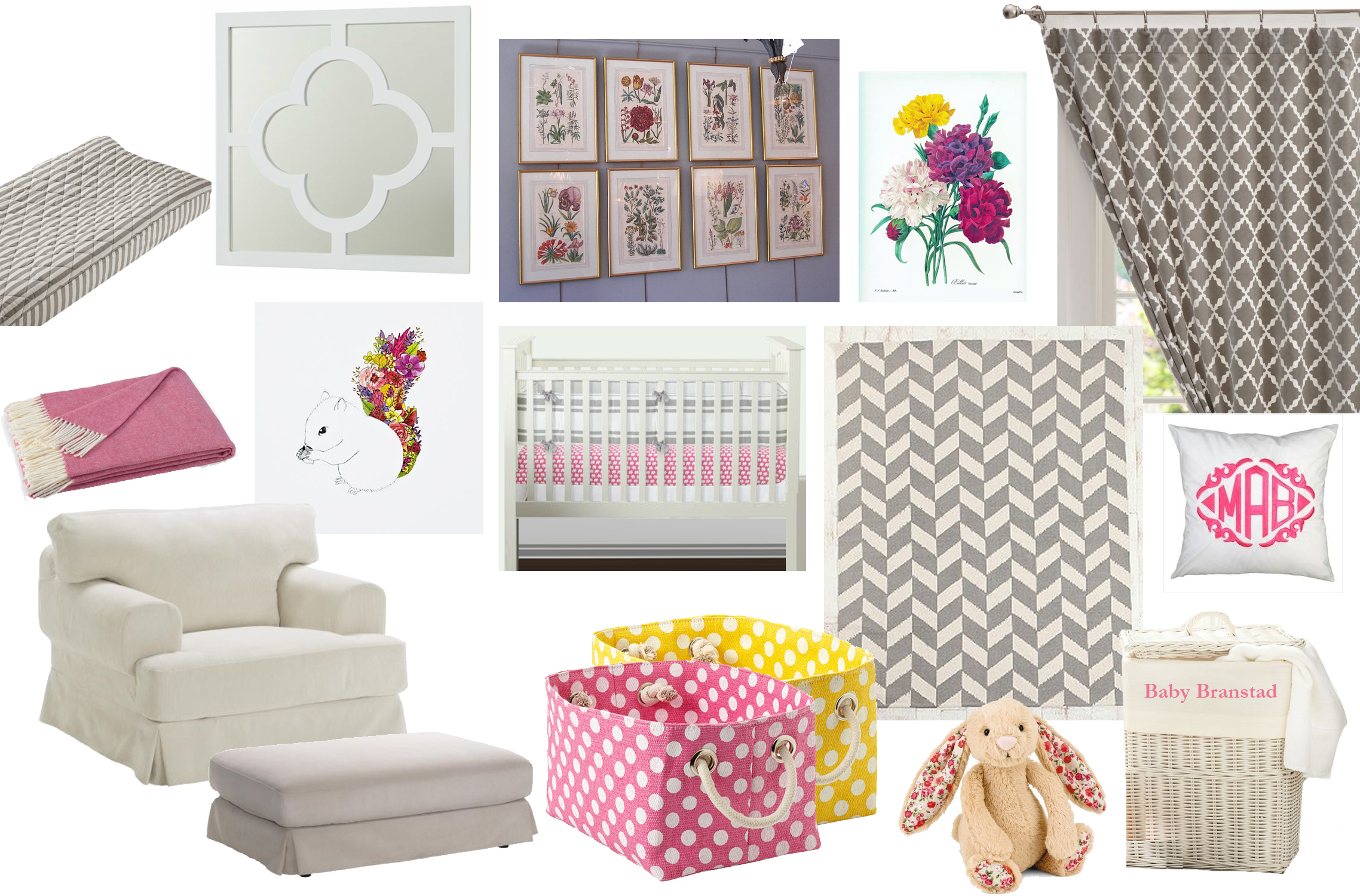 While I’m waiting, my mind is going into overdrive planning the perfect nursery. Here are two design boards that I created a while ago (i.e. before I was preggers) to give you an idea of how I’m envisioning Baby B’s new lair:
