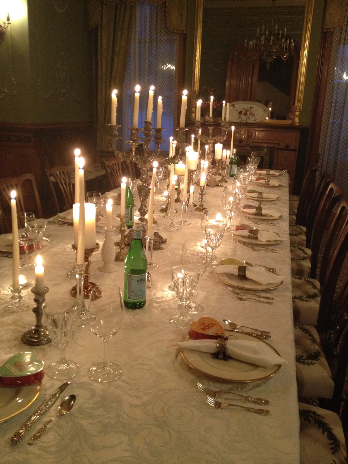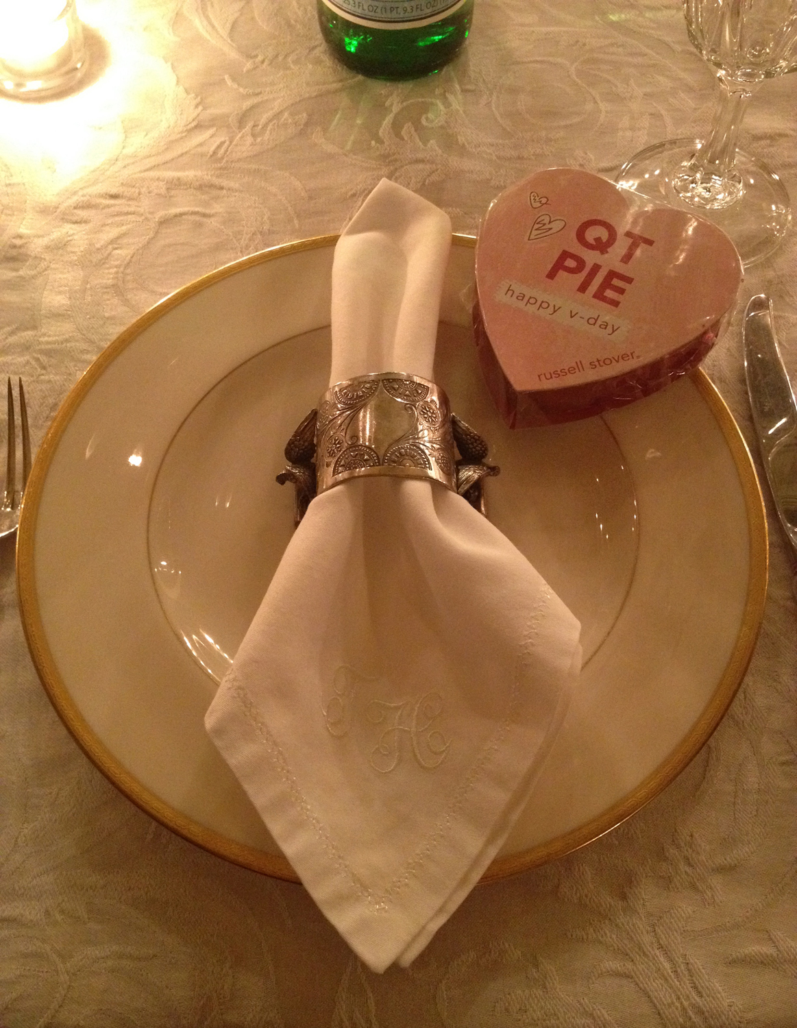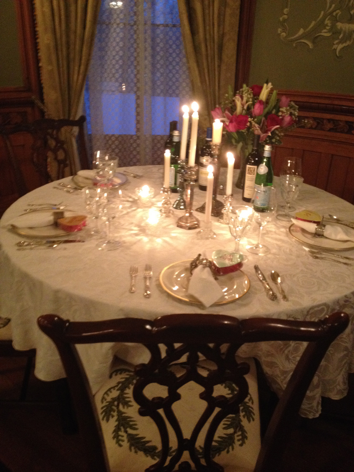 Every year around Valentine’s Day, my husband and three of his buddies prepare a culinary feast for us to enjoy. My roll this year, as in years past, was to set the table and the mood for the evening. (Shout out to my gal Molly for helping out!)
