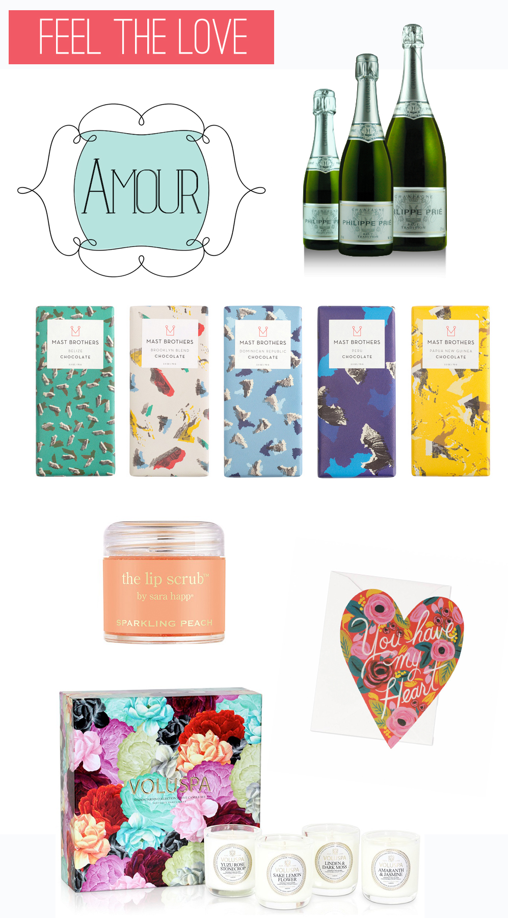 locally-sourced lingerie //champagne card // chocolate // lip scrub // card // candles