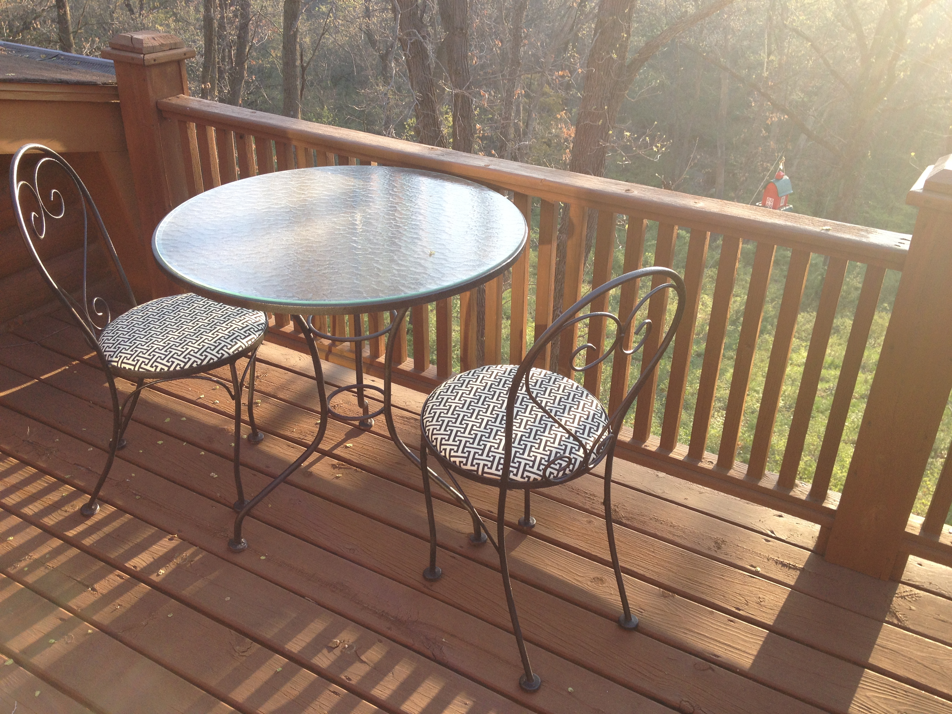 The newly refreshed set is now taking up residence on the deck off of our master bedroom. Not sure if it’ll get much use there, but darn does it look cute!