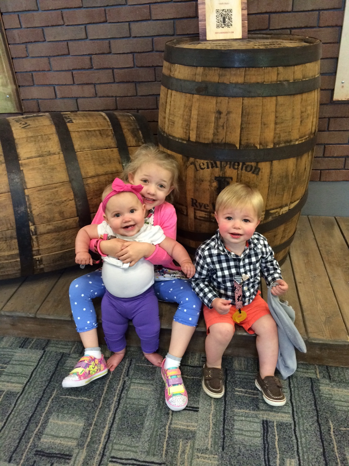 [my little angel babies in front of some Templeton whiskey barrels #parentsoftheyear]