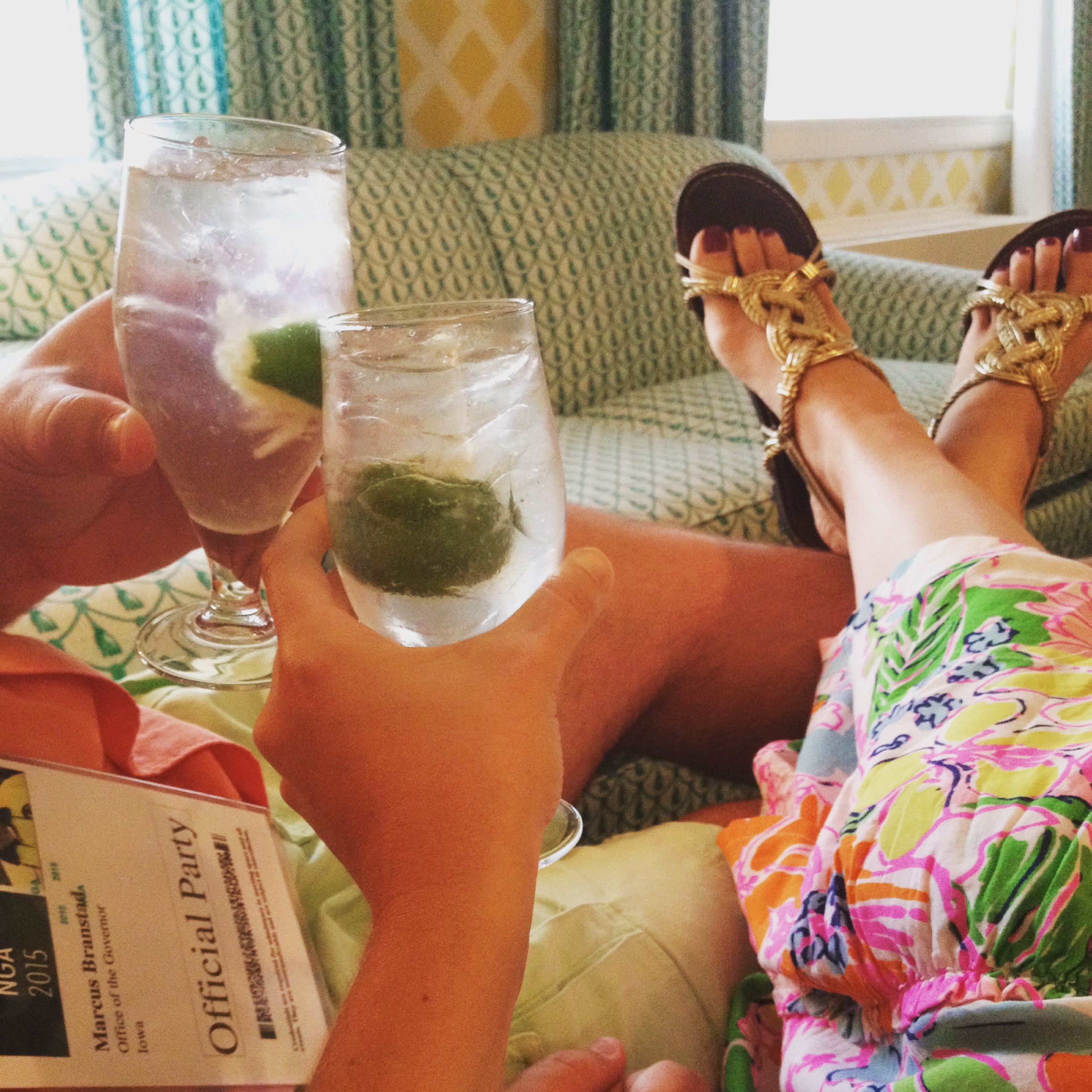 [doing my best to fit in wearing my Lilly Pulitzer for Target jumpsuit]