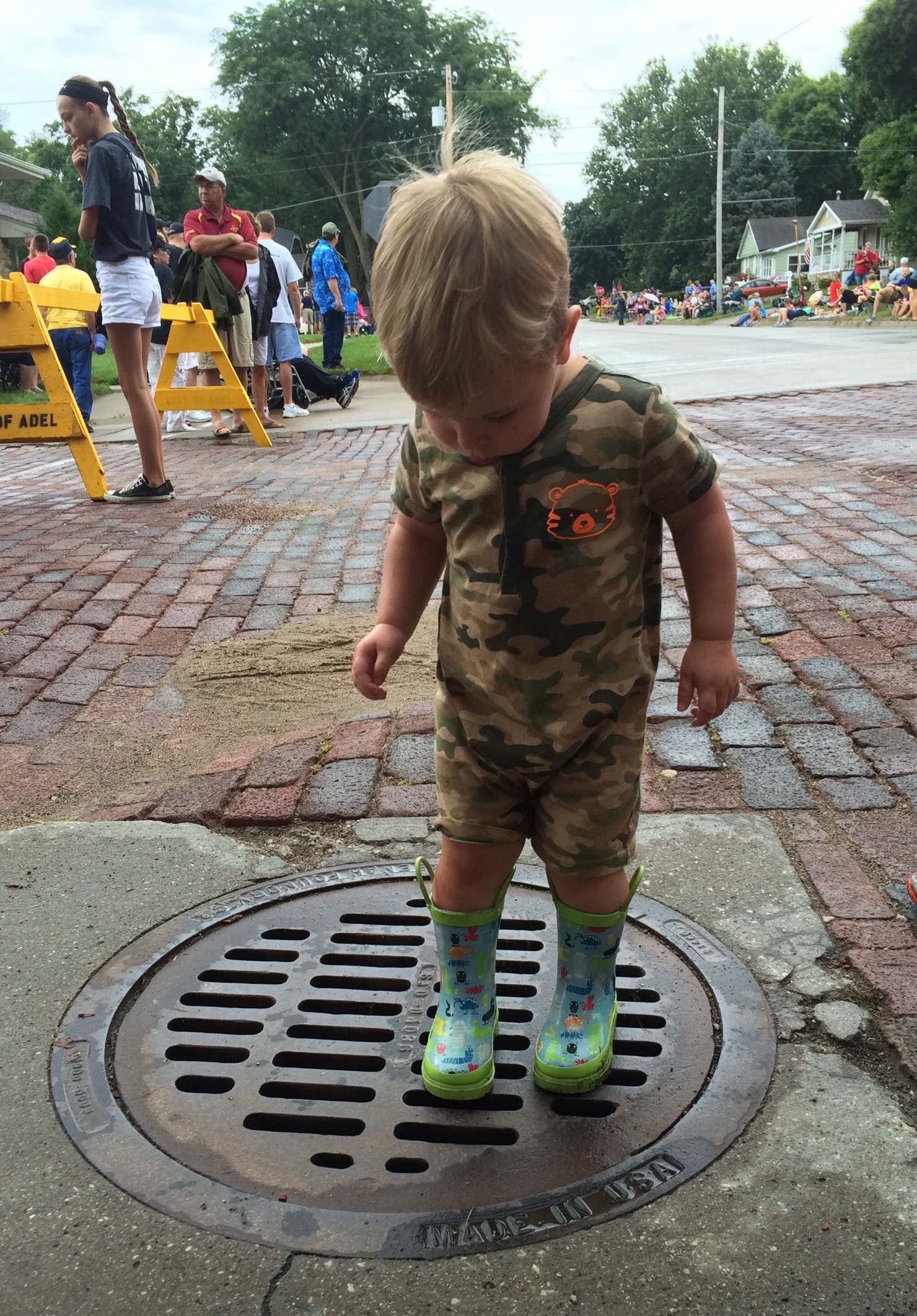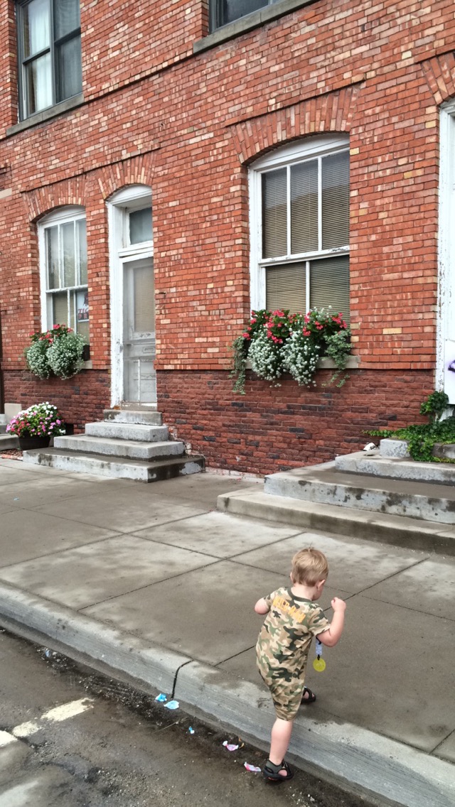 We ditched the parade early to make it around the town square and got in line early for the free sweet corn. We mowed through six buttered up ears in record time and hightailed it out of there in time to make it home for nap time. SUCCESS!