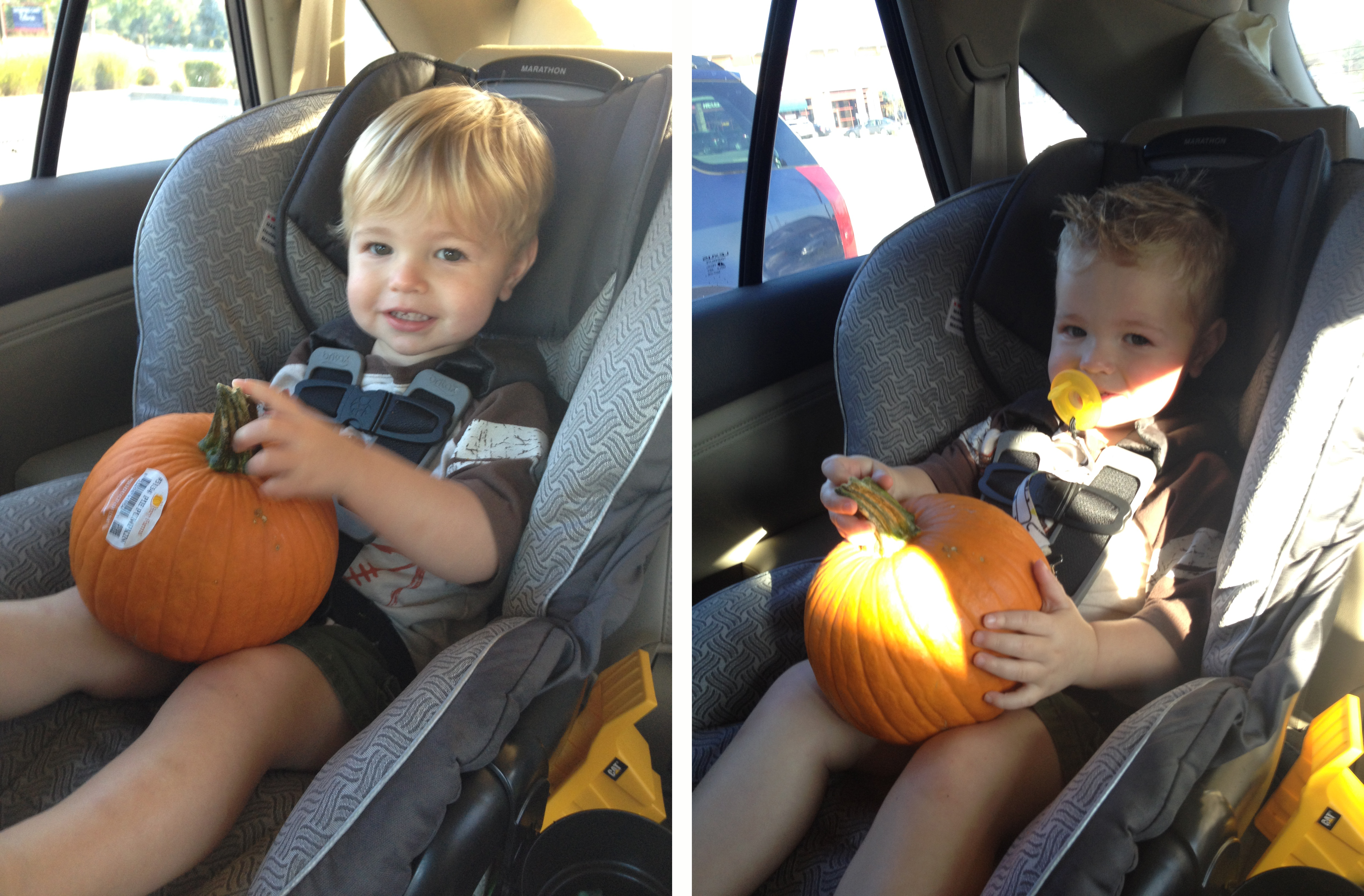 [before and after the tear soaked haircut meltdown – thank God for this pumpkin]